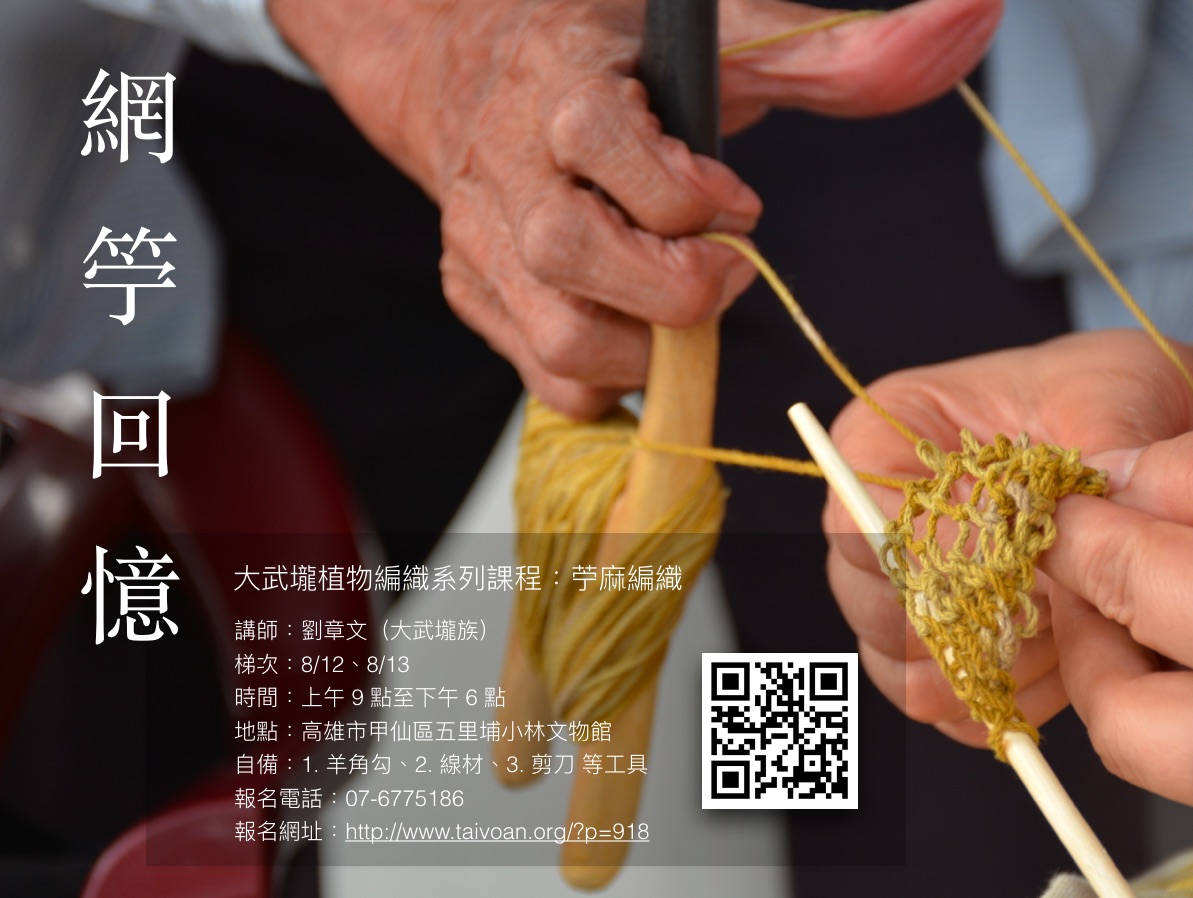 小林部落大武壠工藝扎根行動永不停止,我們將在下週六、日兩天,我們又要一起回五里埔找劉章文阿公聊天,一起開心刺網袋了!